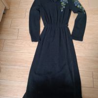 vestito in tessuto caldo tipo lanetta (vedi etichetta un po'' misteriosa...) con ramo fiorito dipinto su una spalla. ha i ...