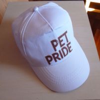 ceppellino in cotone bianco con la scritta pet pride, usato una sola volta. su un lato c''è il logo dell''agenzia pubblici...