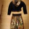 | completo due pezzi per le feste composto da gonna in tessuto cangiante con elastico decorato in vita, e giacchina in vellu... | ||