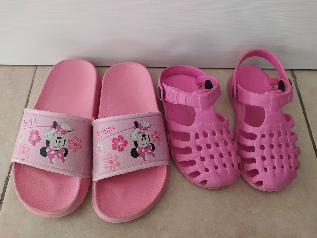 Descrizione:Ciabattine bimba mare/piscina. Minnie numero 26. De Fonseca numero 22/23. 3 crediti al paio.