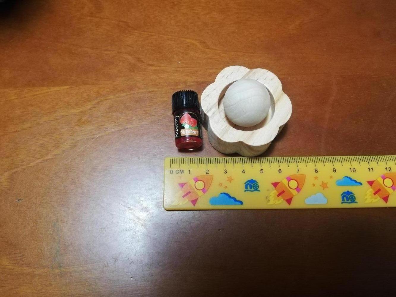 Profumatore in legno a forma di fiore con pallina removibile e olio essenziale alla fragola da 3ml. Nuovo.