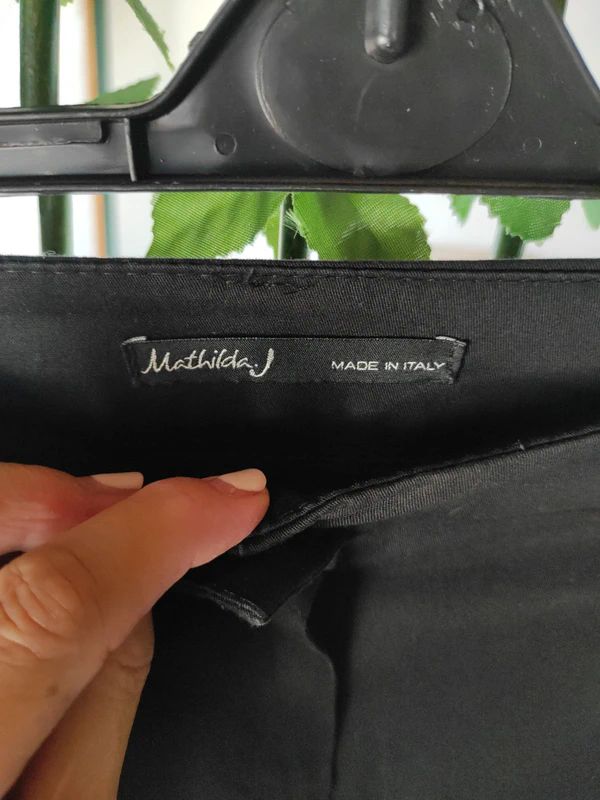 Descrizione:Pantalone nero Mathilda J composizione in foto. Sull'etichetta c'è scritto S/42 le misure della vita, da lato a lato sono 40 cm, lunghezza totale dalla vita alla caviglia 84 cm