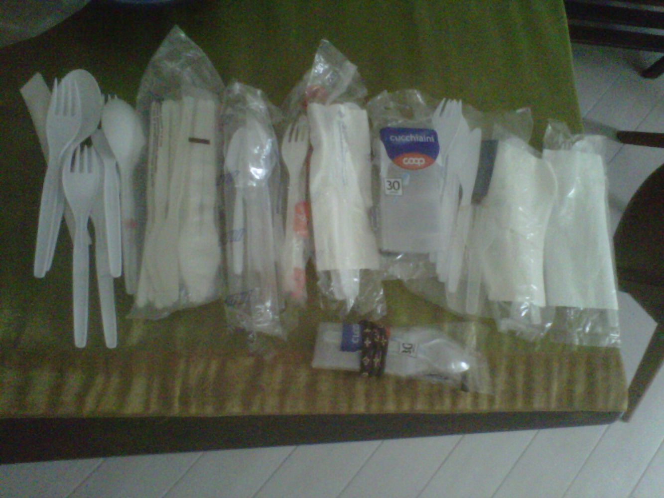 Descrizione:posate in plastica, come da foto, quasi tutte nuove e imbustate, solo poche aperte (ma credo comunque nuove)