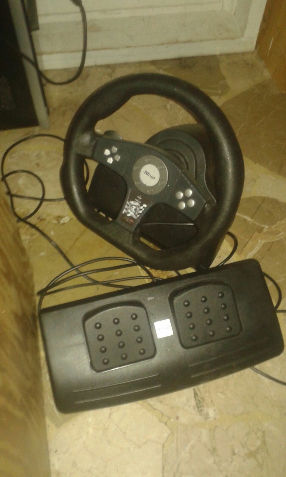 Descrizione:volante con pedali per pc.. non so se funziona perchè non ho la possibilità di provarlo.. della trust