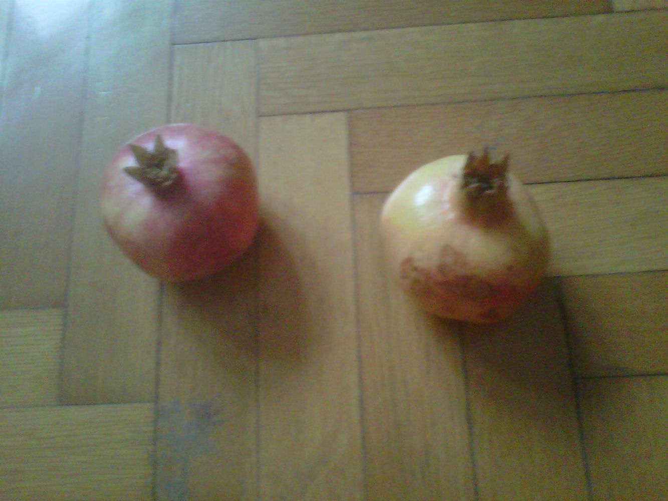 Descrizione:due melegrane appena raccolte diam. circa 7-8 cm