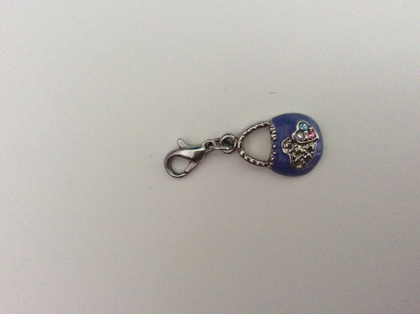Piccolo ciondolo a forma di borsetta, può essere usato sia come portachiavi sia da appendere a braccialetti o collane.