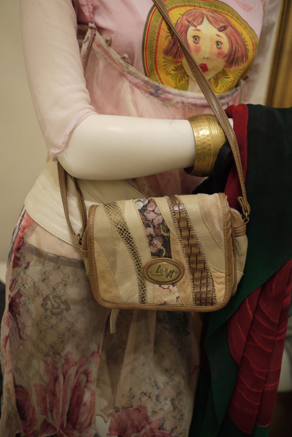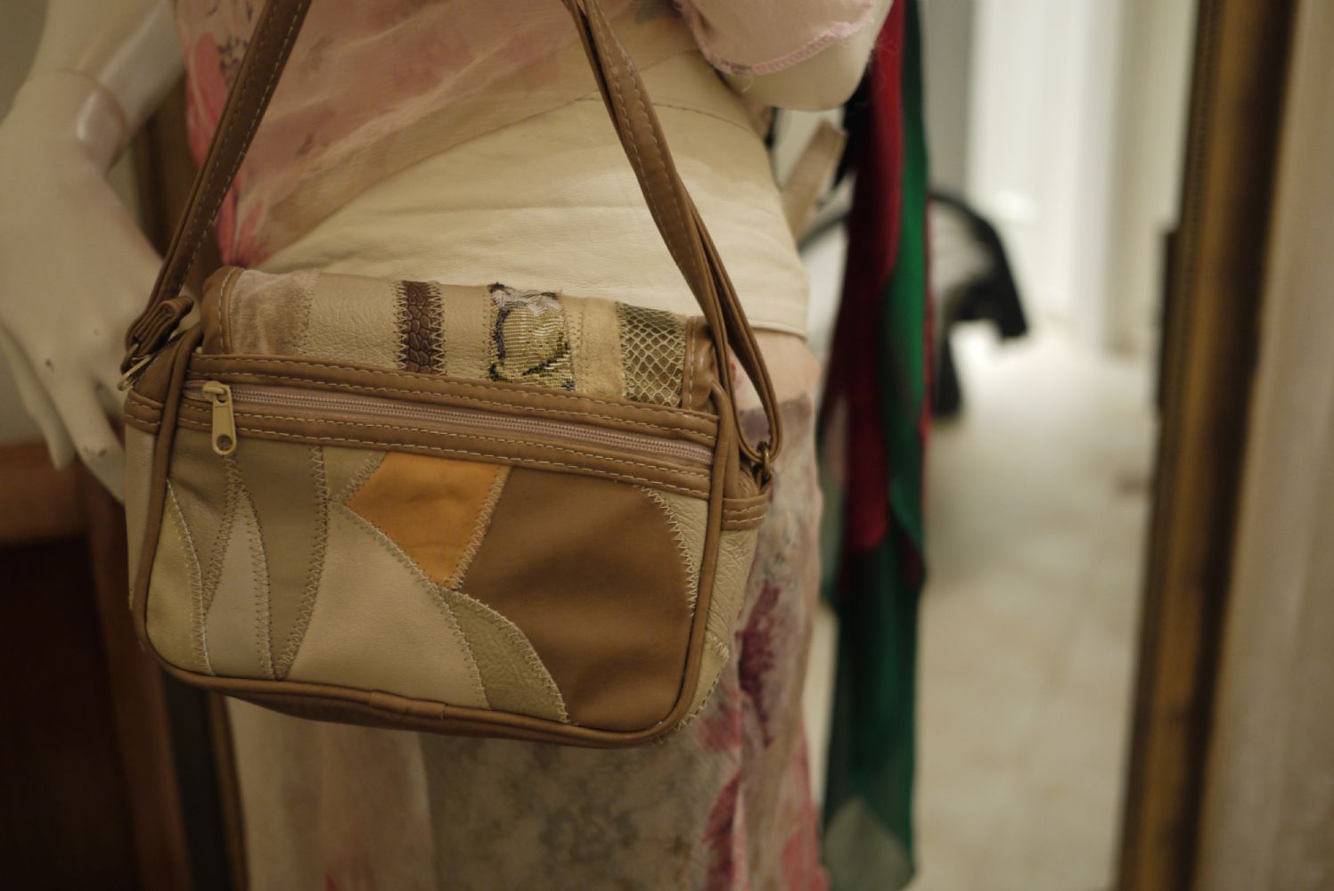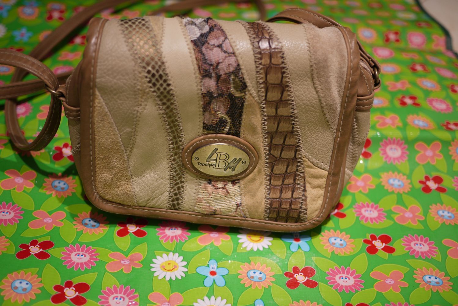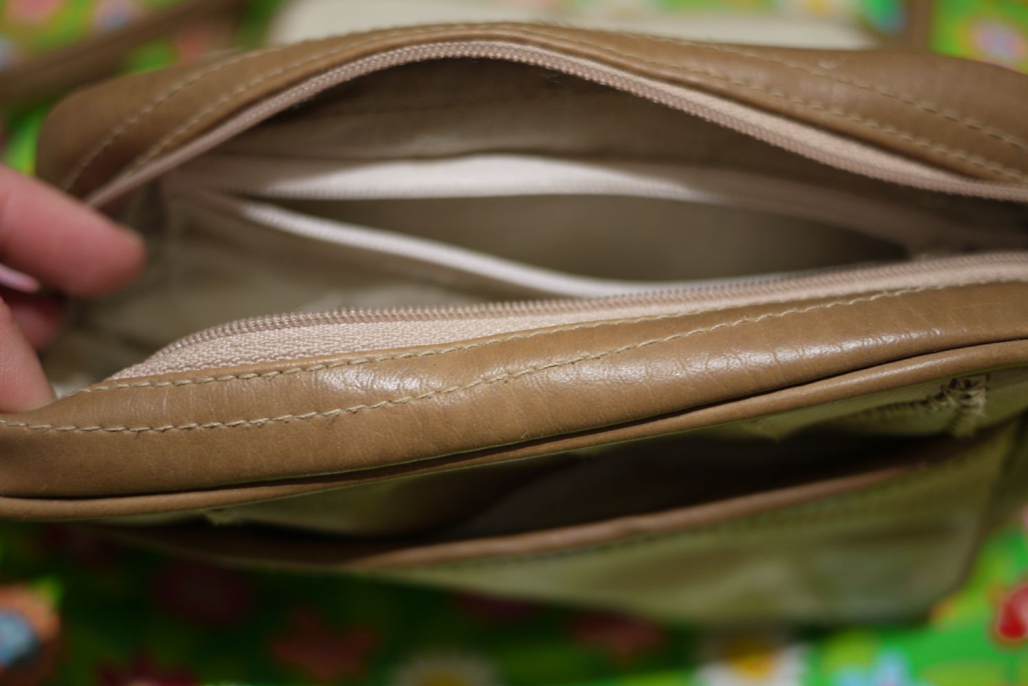 Piccola borsa con due tasche con cerniera e tre scomparti, manico allungabile.