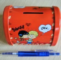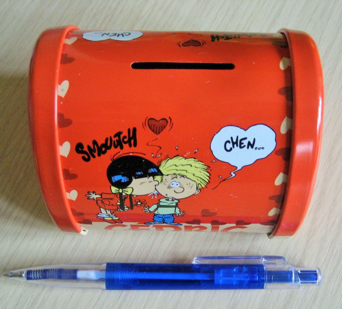 Descrizione:salvadanaio in latta preso in scambio anni fa