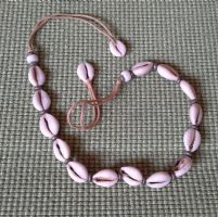Collana girocollo fatta di bellissime conchiglie color beige, per chiuderla si annoda