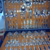 Descrizione:2 set di posate vintage nuove mai usate completo per 12 persone più mestolo e posate per servire. un po segnati dal tempo ma si possono pulire.