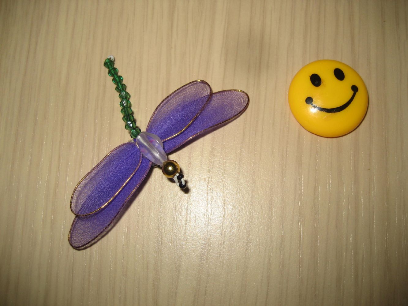 Descrizione:calamite libellula artigianale credo fatta con calze velate e smiley