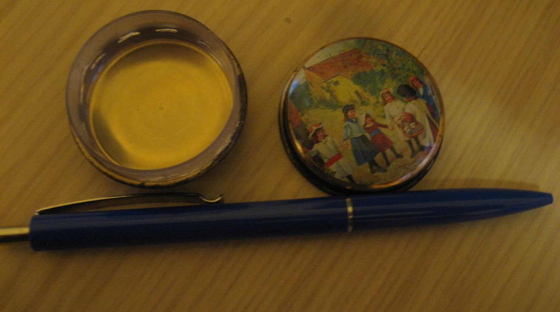 Descrizione:vecchia scatolina per pastiglie... raffigura bambini che giocano