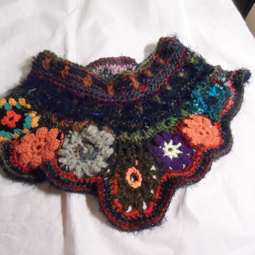 Realizzato con i più svariati filati e altrettanti colori..maglia, uncinetto, qualche applicazione ...insomma..mi sono divertita