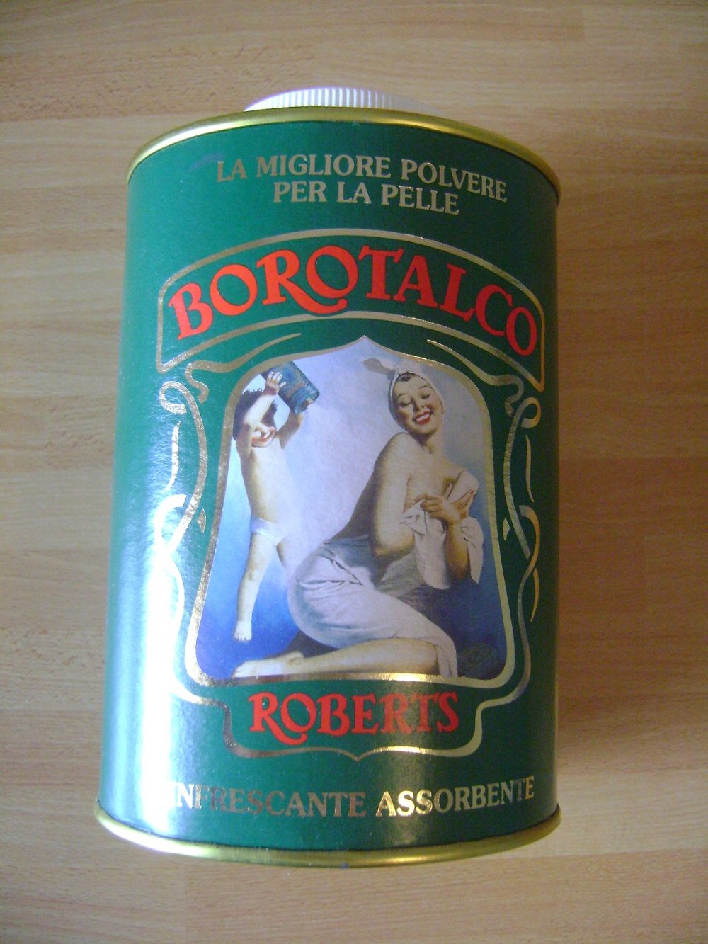 Descrizione:Borotalco Roberts confezione da 500 grammi chiusa.
