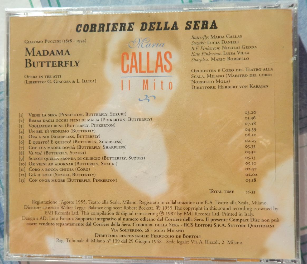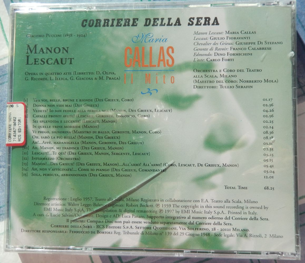 Domanda: in ogni cd c'è l'opera intera o solo delle arie? Sarebbe interessante capire gli anni di registrazione tramite una foto del retro perché dopo gli anni 60, come sai, la sua voce ha avuto un declino. Grazie
