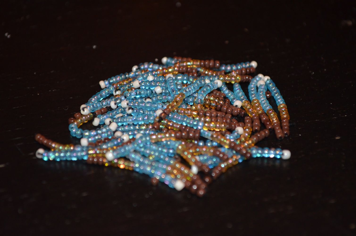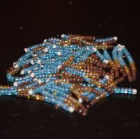 Cedo a un credito queste perline, appena tolte da uno stupendo top che ho ricevuto stamattina perchè lo preferisco semplice. Perfette, sono marroni, beige, azzurre e qualcuna bianca