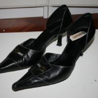 Descrizione:Scarpe nere con scollo ai lati e bottoni sul davanti, a punta. Marca Vergelio