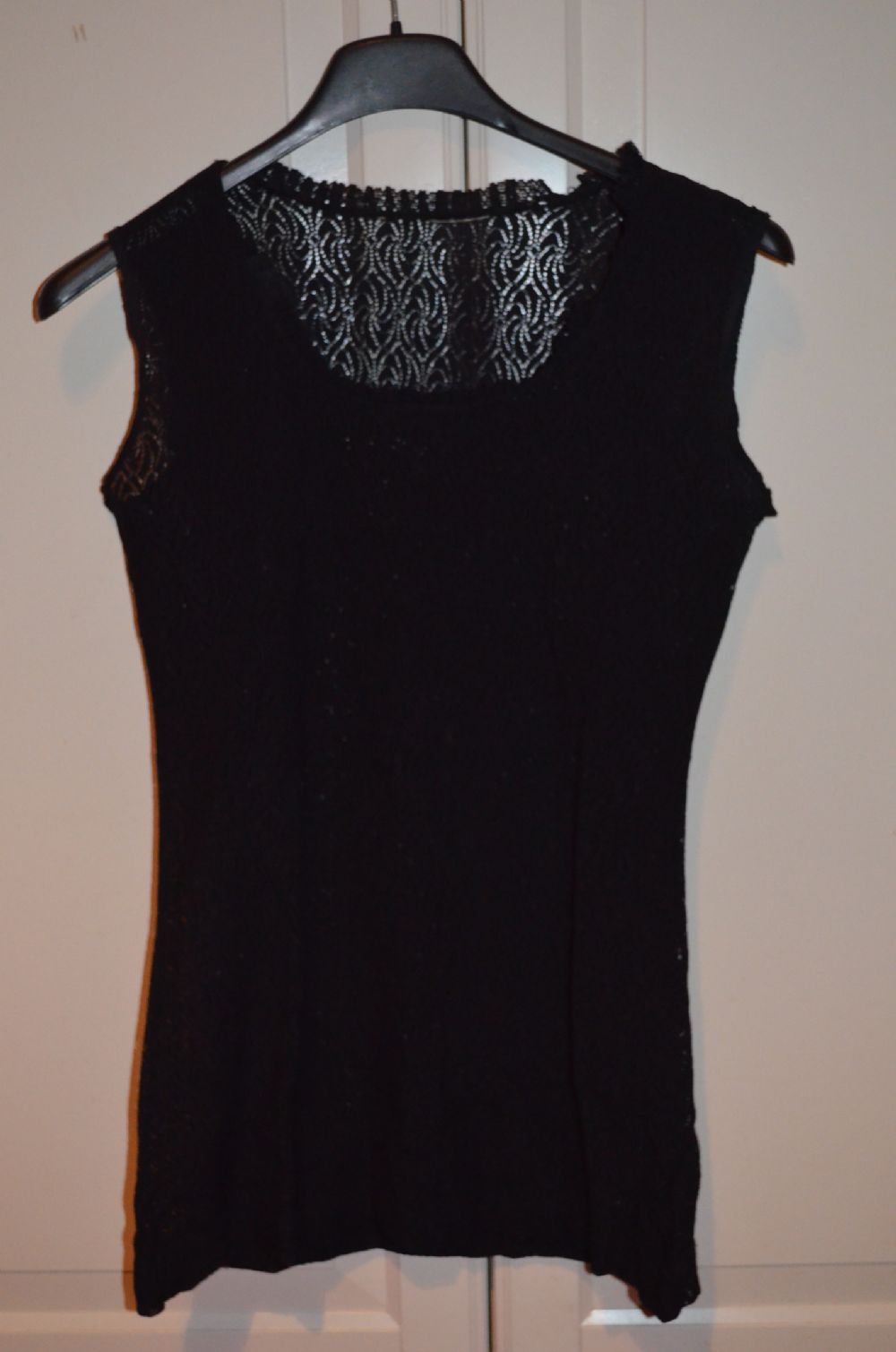 Descrizione:Canotta nera da donna traforata (vedi seconda foto) quindi leggermente trasparente