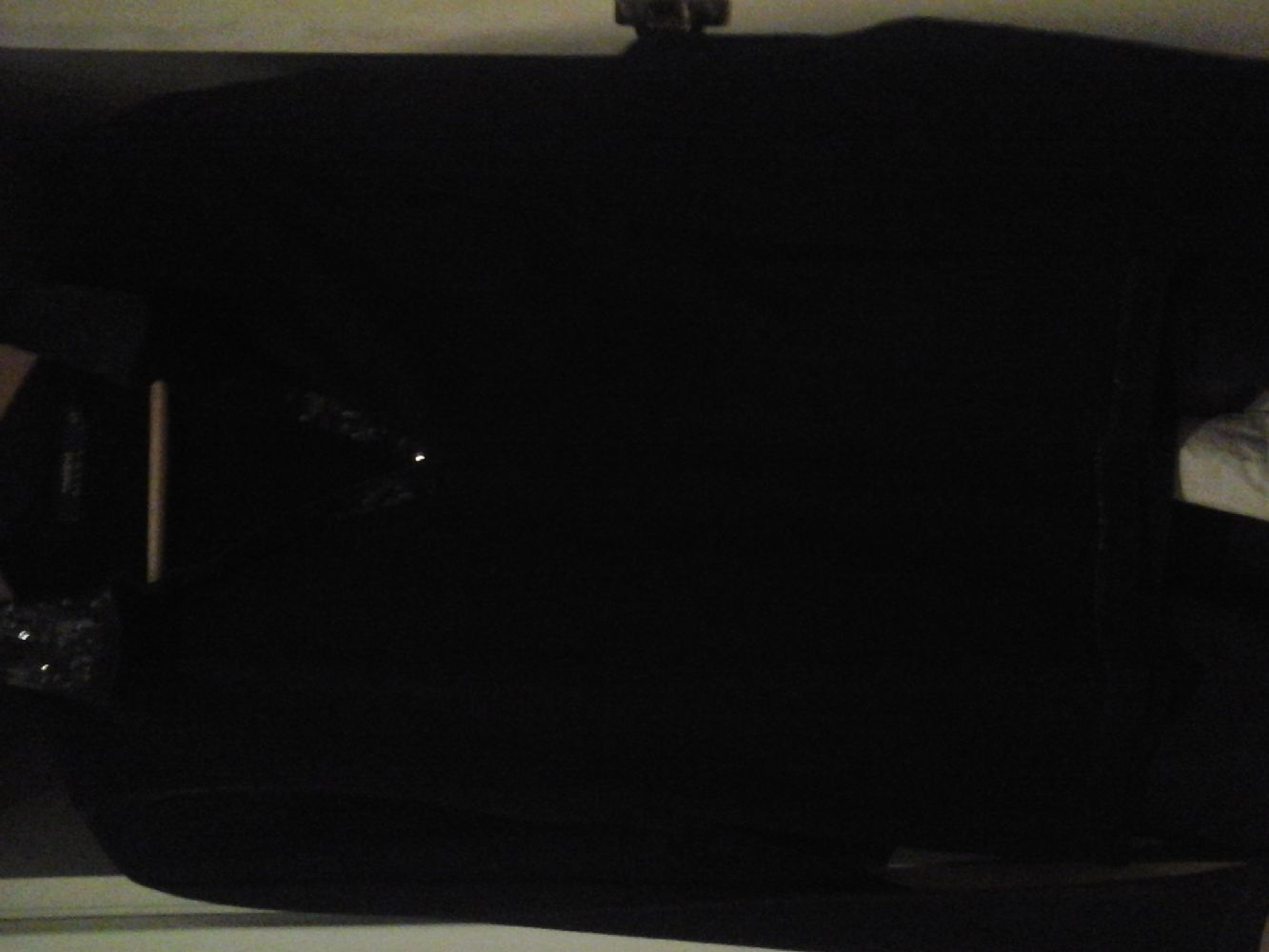 Maglietta nera a costine, scollo a v con colletto tempestato di paiettes, molto carina e luccicosa.
