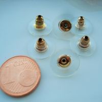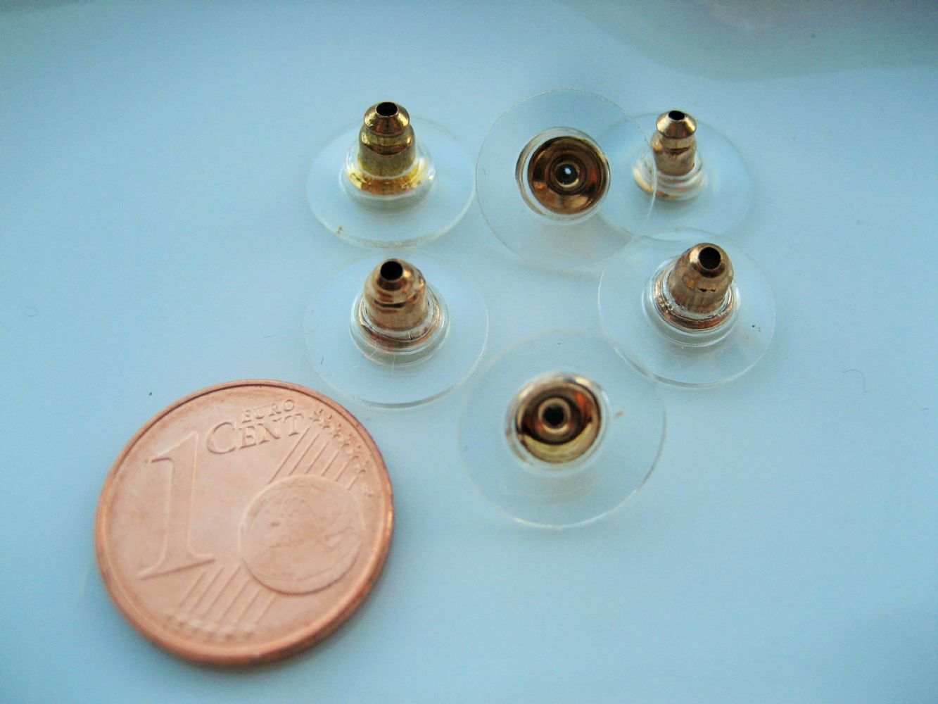 Descrizione:6 fermi chiusure x orecchini in metallo dorato e plastica trasparente