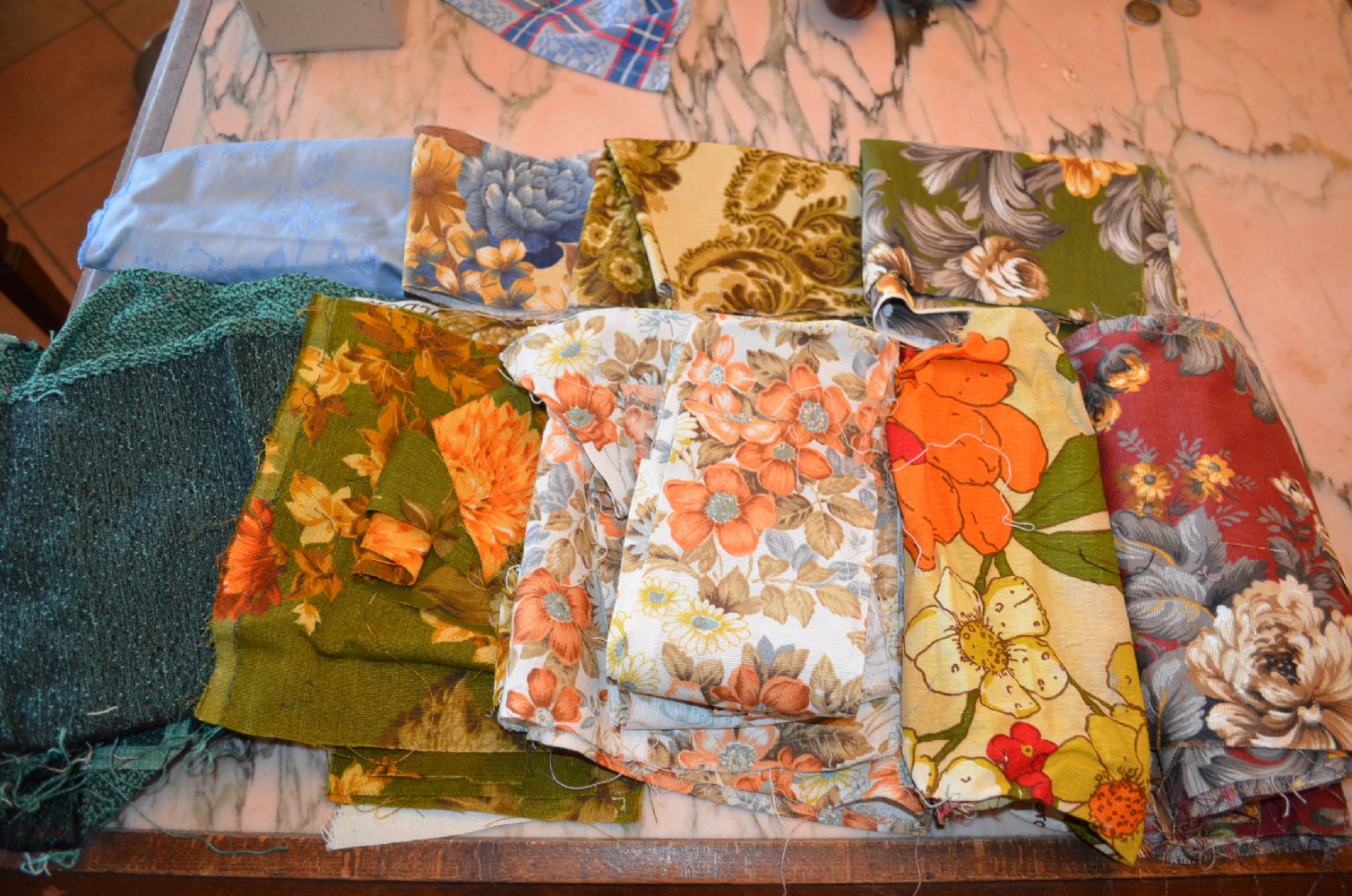 Descrizione:La mia nonna le chiamava non mi ricordo bene come. Sono stoffe spesse, tipo tappezzeria, coloratissime ma la fantasia è diversa sull'altro lato, diciamo "in negativo".