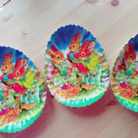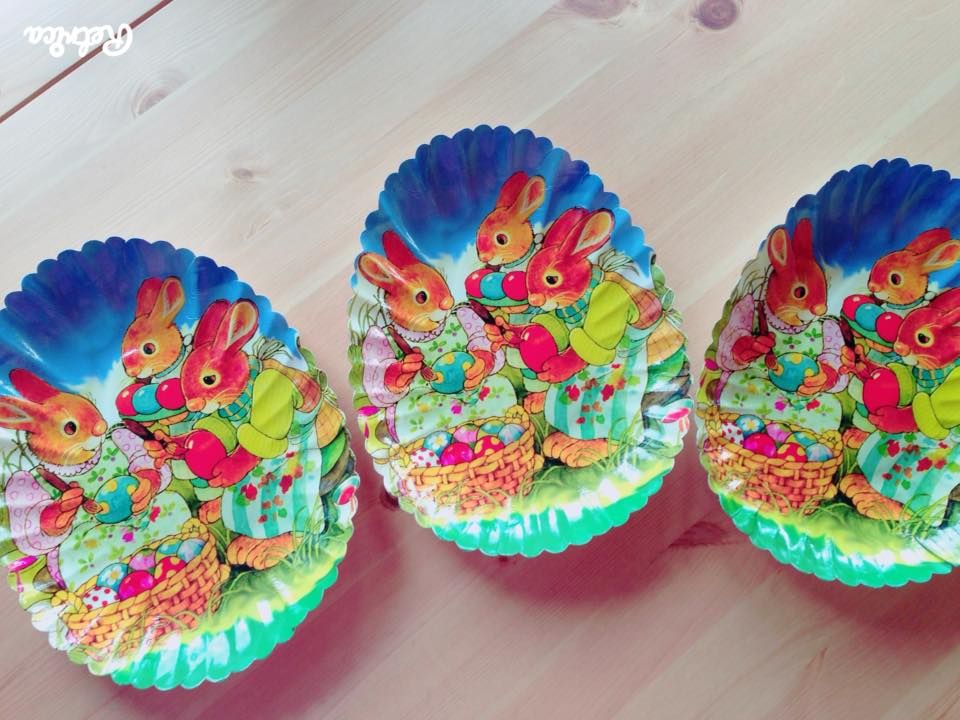 Descrizione:di carta, a forma di uovo, con conoglietti