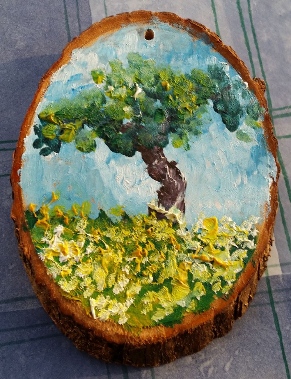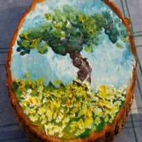 Olio su tronco tagliato ovale