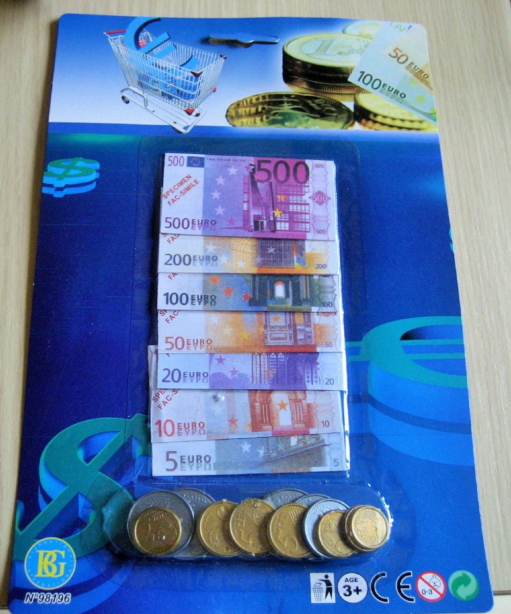 Descrizione:gioco per conoscere gli euro,in carta e monete in plastica adatto a bambini dai 3 anni in su