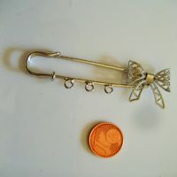 spilla con fiocchetto e 3 anellini per attaccate ciondoli,in metallo argentato