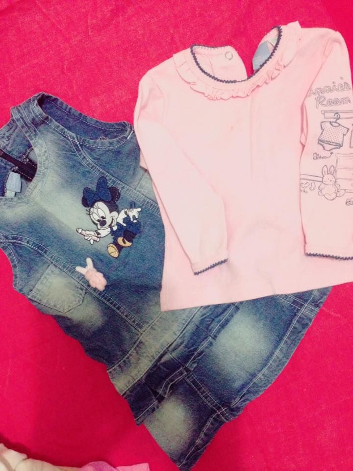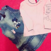 Descrizione:1 completino scamiciata e maglietta disney minnie e zainetto tg 12 mesi. c'è una piccola macchia sulla maglietta, ma quando si indossa con la scamiciata è praticamente invisibile..per il resto tutto in condizioni perfette