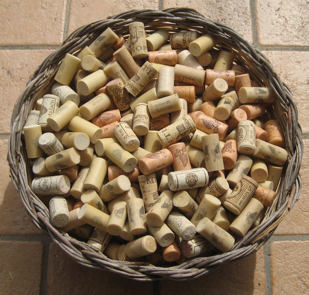 Descrizione:un cesto pieno di tappi misti,sughero e plastica
