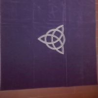 Descrizione:Tappettino viola per divinazione in velluto, consimbolo Wiccan ricamato in oro.