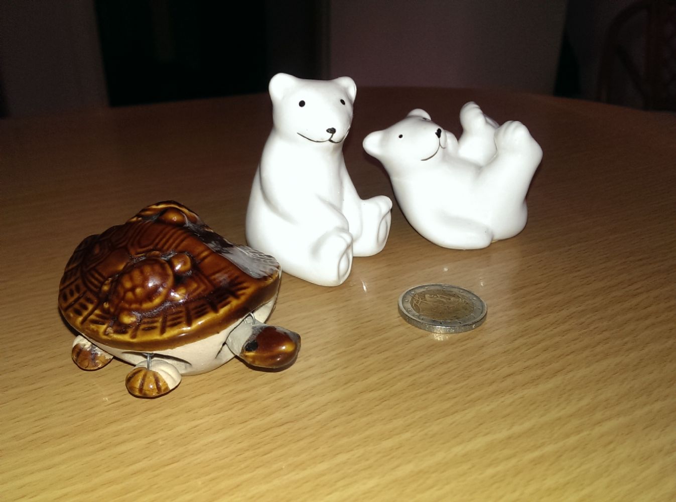 Coppia di orsetti in ceramica in ottimo stato e una tartarughina "mobile"