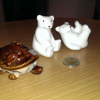 Descrizione:Coppia di orsetti in ceramica in ottimo stato e una tartarughina "mobile"