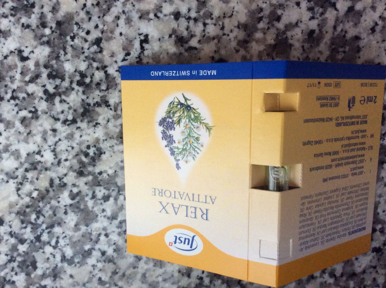 Descrizione:Olio essenziale Just. (Da borsetta, 2ml) nuovo, mai aperto. Il profumo e' buonissimo, io ho la versione grande, perciò non uso questo botticino. Ne serve veramente solo qualche gg. RELAX: combinazione di olio essenziale menta, rosmarino, eucalipto, melissa.