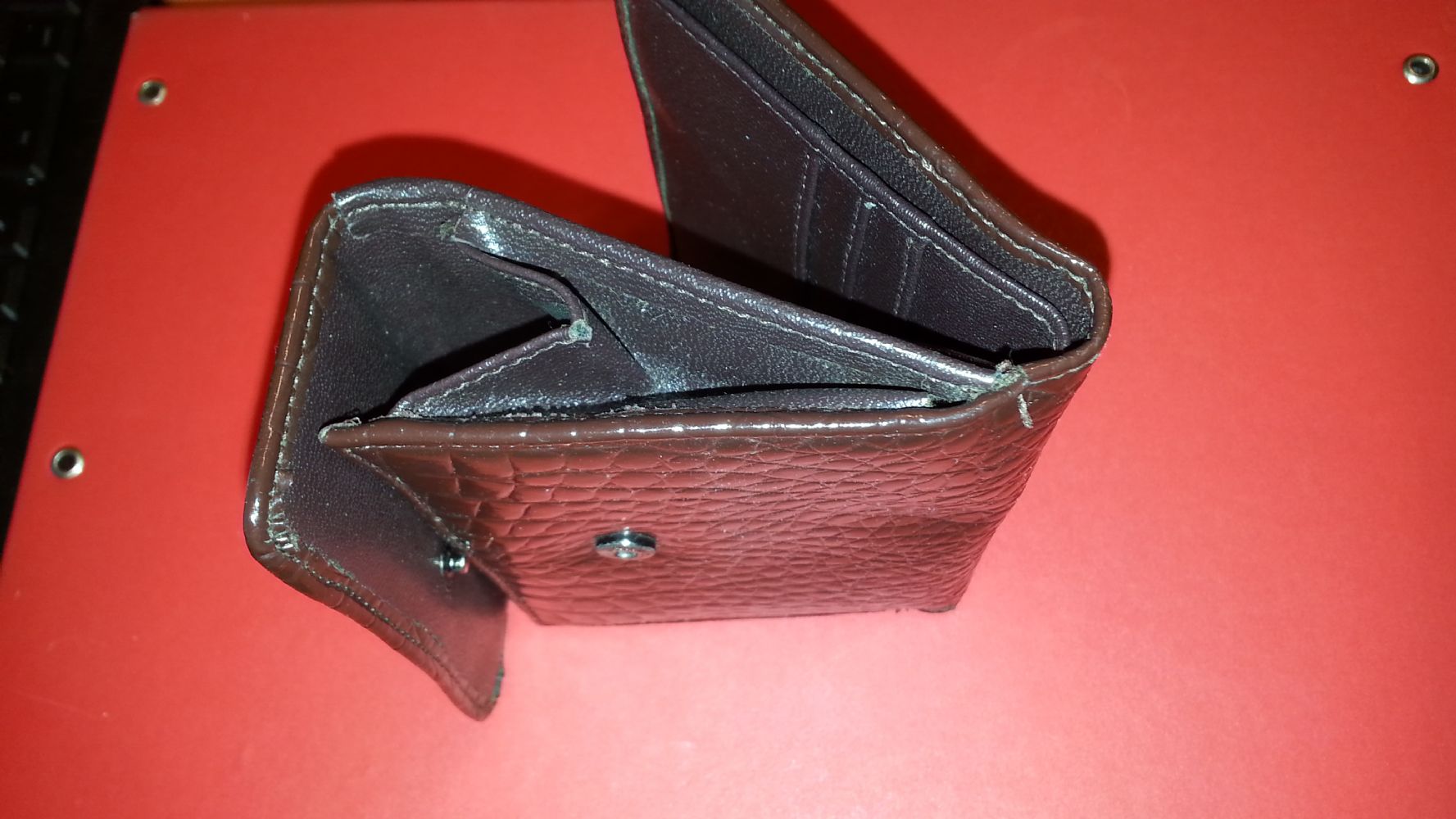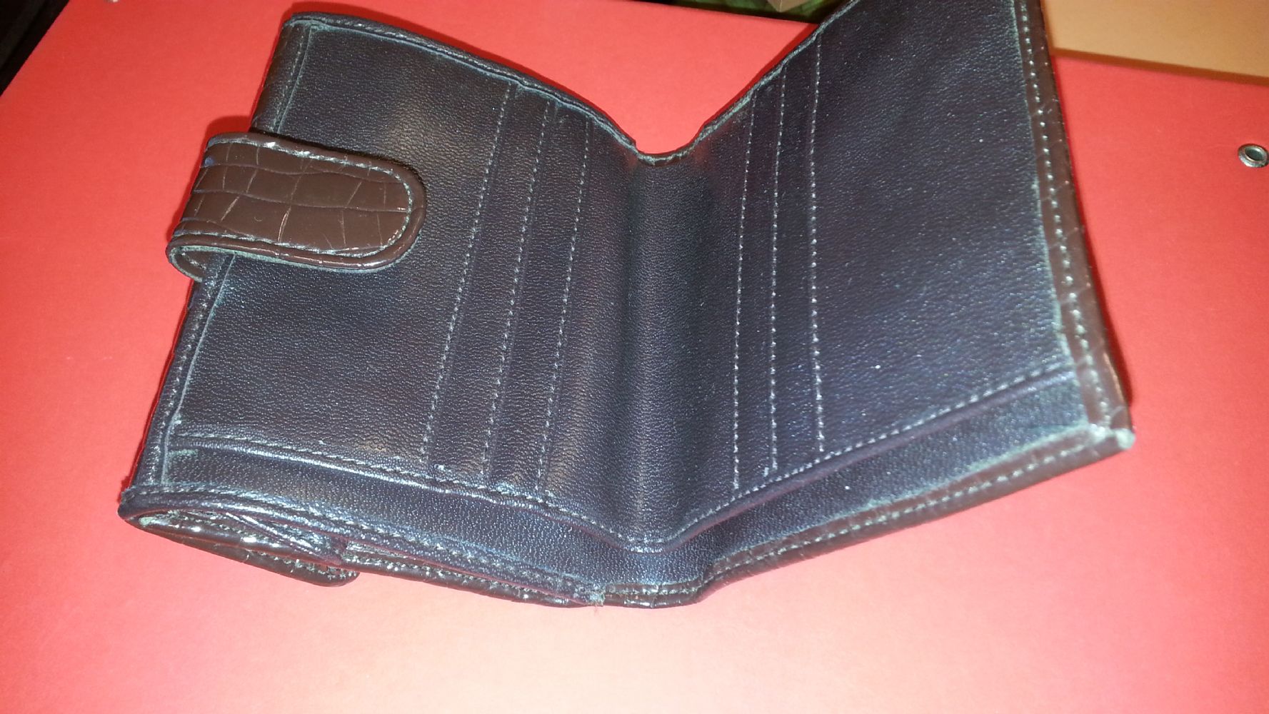 Descrizione:SCONTATO!!! Portafoglio donna similpelle marrone praticamente nuovo, mai usato. Con scomparti portatessere, porta monetine e porta soldi