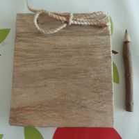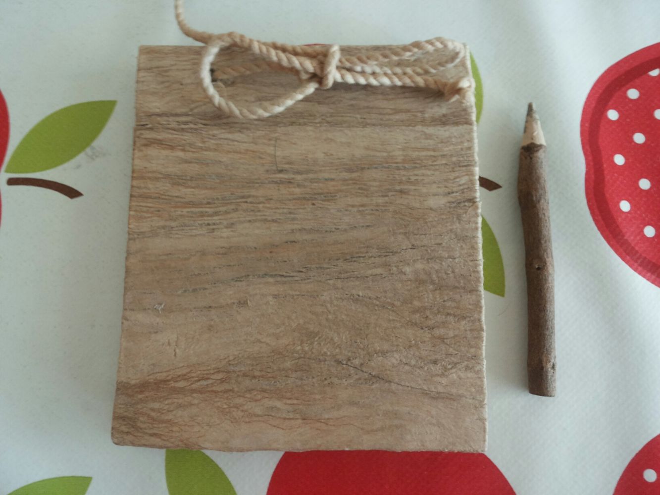 Descrizione:Bloc notes fatto a mano (non da me), con carta artigianale e matita ricavata da un rametto. Nuovo e regalabile.
