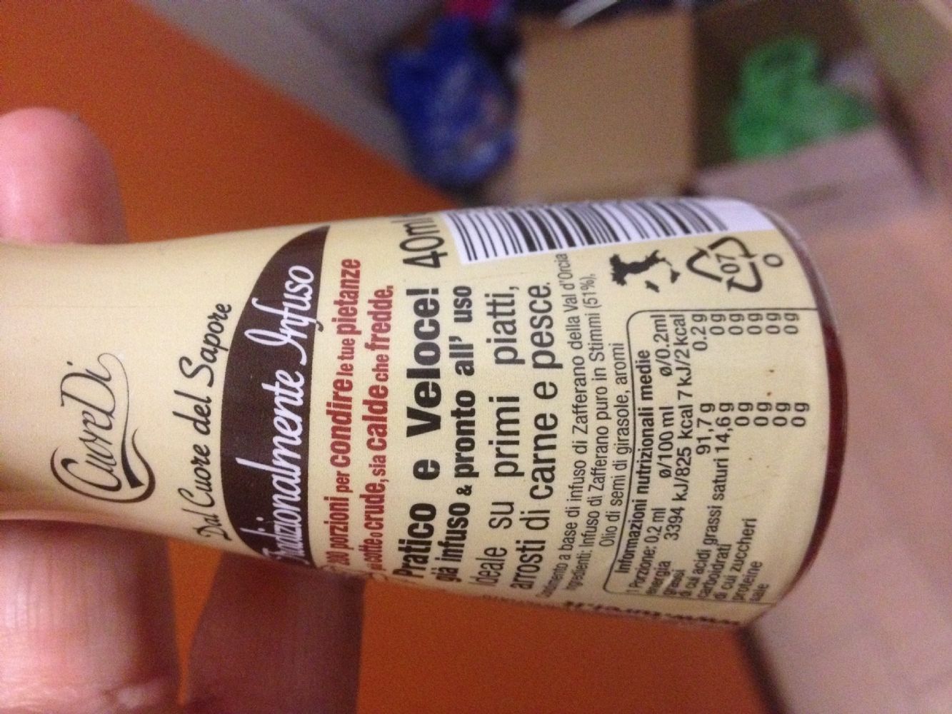 Descrizione:Infuso di zafferano italiano puro in olio di girasole. In spray è comodissimo da dosare, ne basta davvero pochissimo per aromatizzare. Confezione sigillata. Scadenza 04/2017