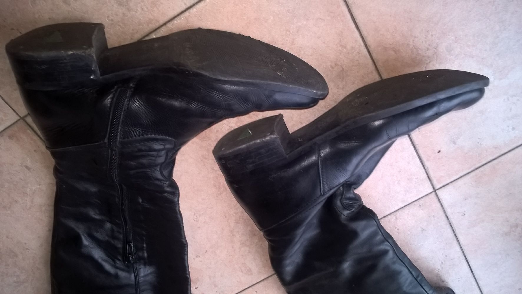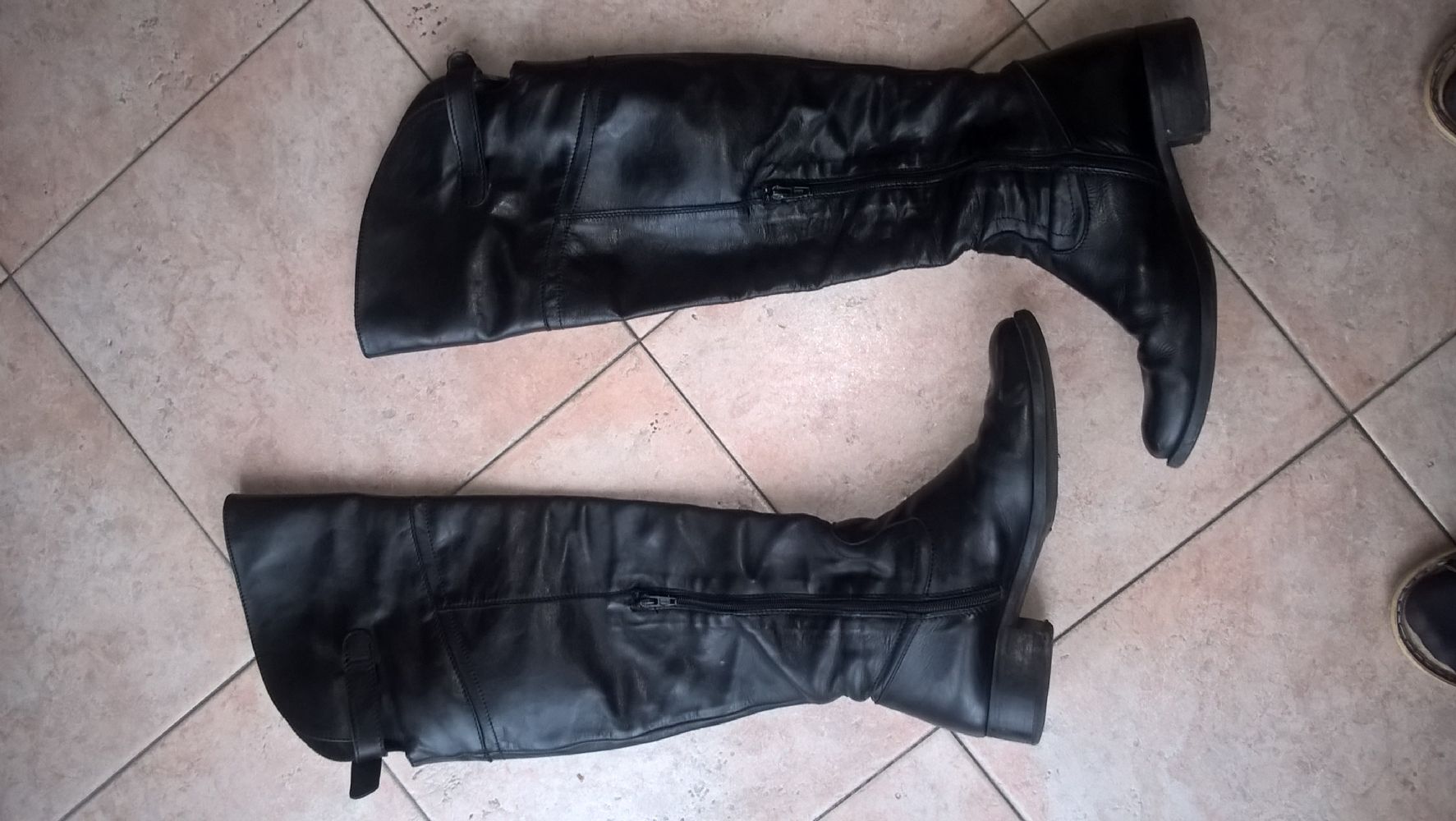 Descrizione:Stivali neri alti sopra al ginocchio ma che si possono risvoltare (a Peter Pan) numero 39. Usati tantissimo e da rifare il tacco