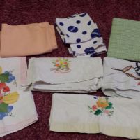 Tutti cotone usato tanto alcuni hanno macchiette ma io non uso lo smacchiattore quindi chi lo usa le saprà togliere