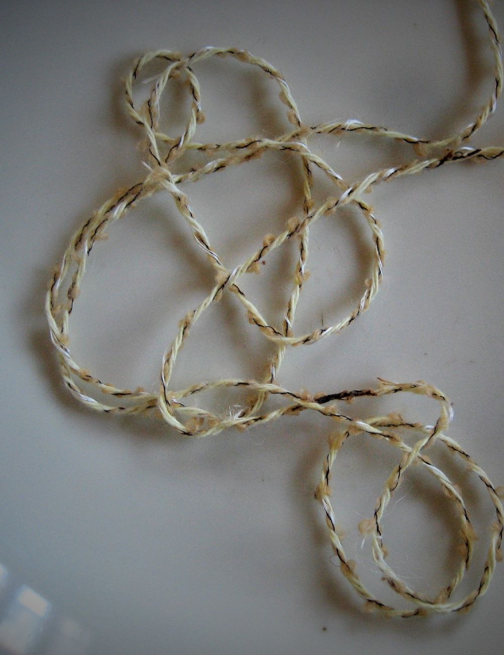 Descrizione:6 metri filato in lino/canapa e un filo beige più lucido
