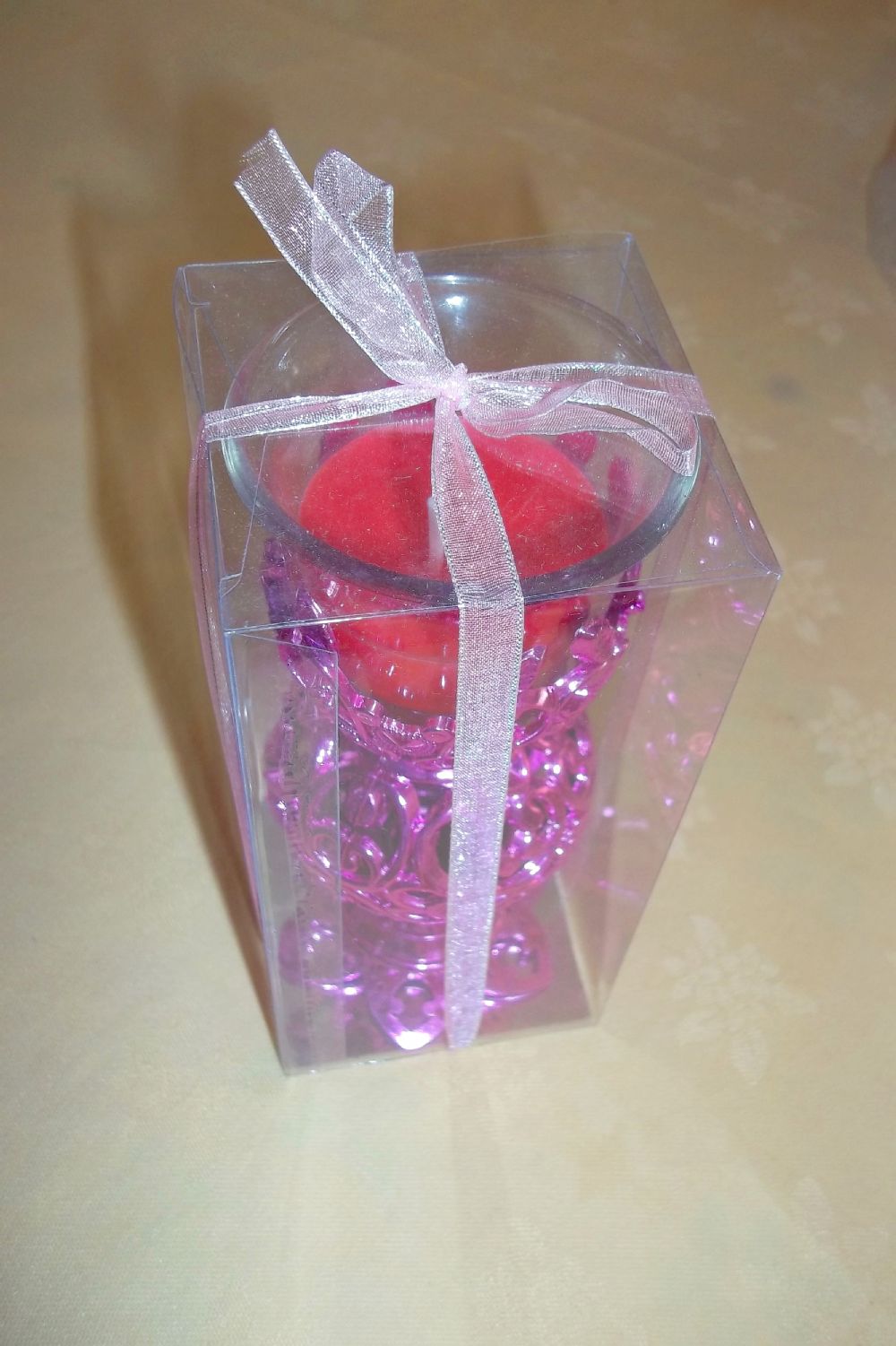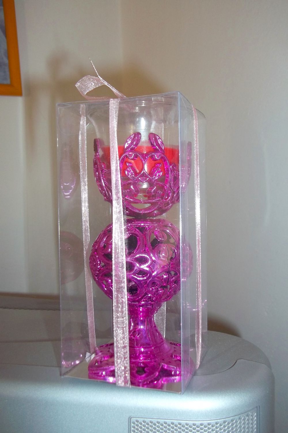 Descrizione:portalumino/candelina con struttura in plastica viola dorata,