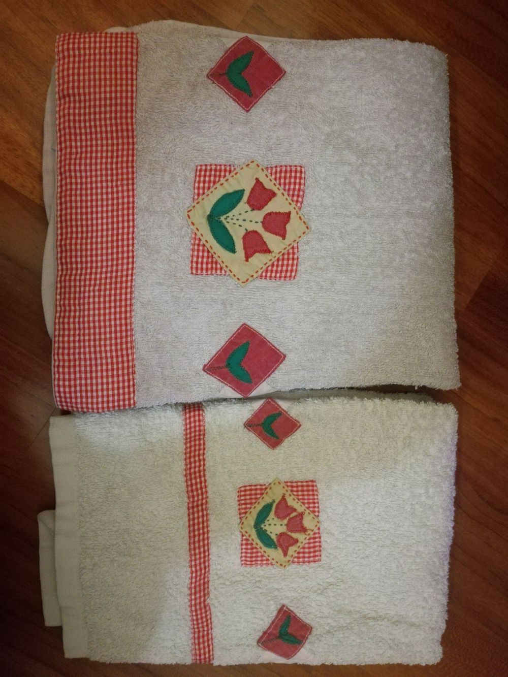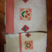 Set asciugamani viso e ospite, 100% cotone, usato tanto. Quello per il viso non è più candido ma leggermente roseo per via dei colori sbiaditi e scambiati. Quello piccolo è in ottime condizioni. Per il resto sono ancora sfruttabili.