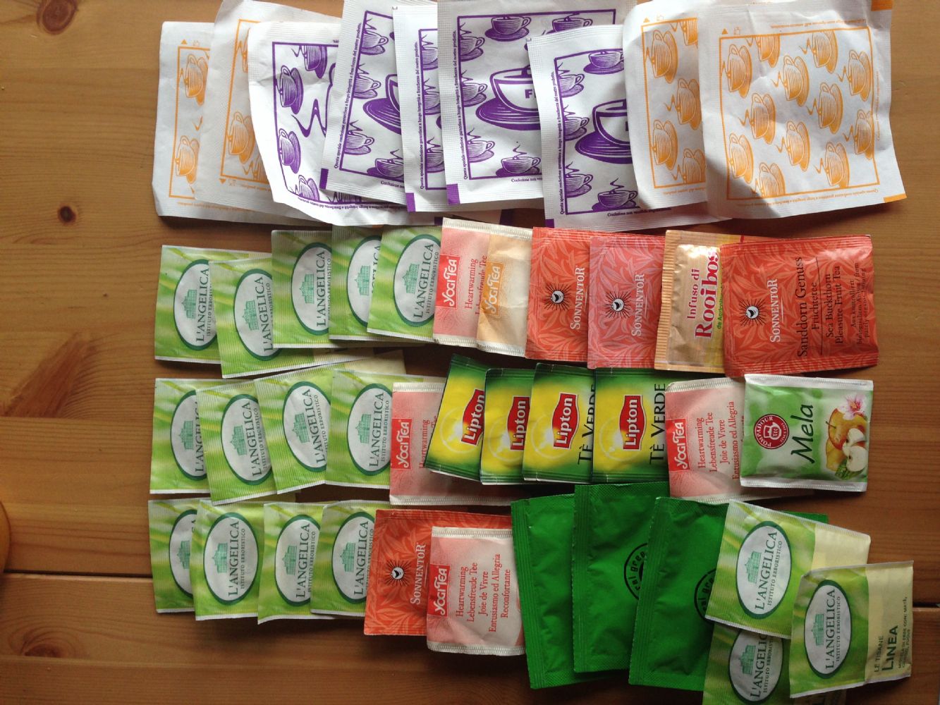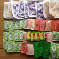 Descrizione:43 bustine miste di te e tisane. Tutto recentissimo solo le cialde Verdi di tè verde confezioni in basso sono scadute a novembre in tutto sono 43 sacchetti