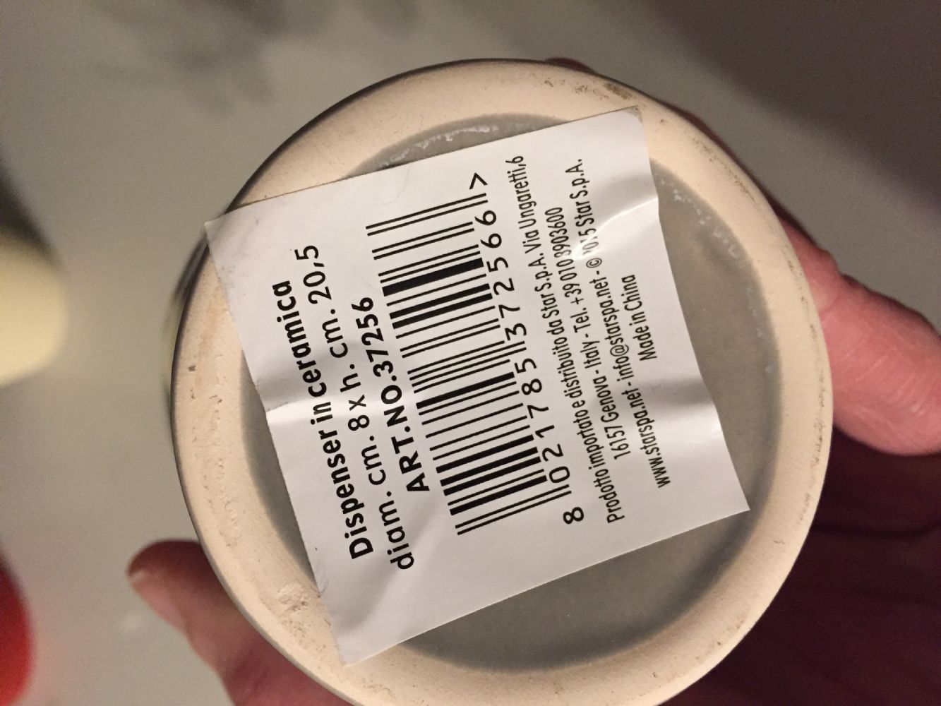 Descrizione:Dosatore sapone liquido per le mani. Mai usato. Il colore e' saltato in due punti ed e' stato ritoccato (vedi foto).