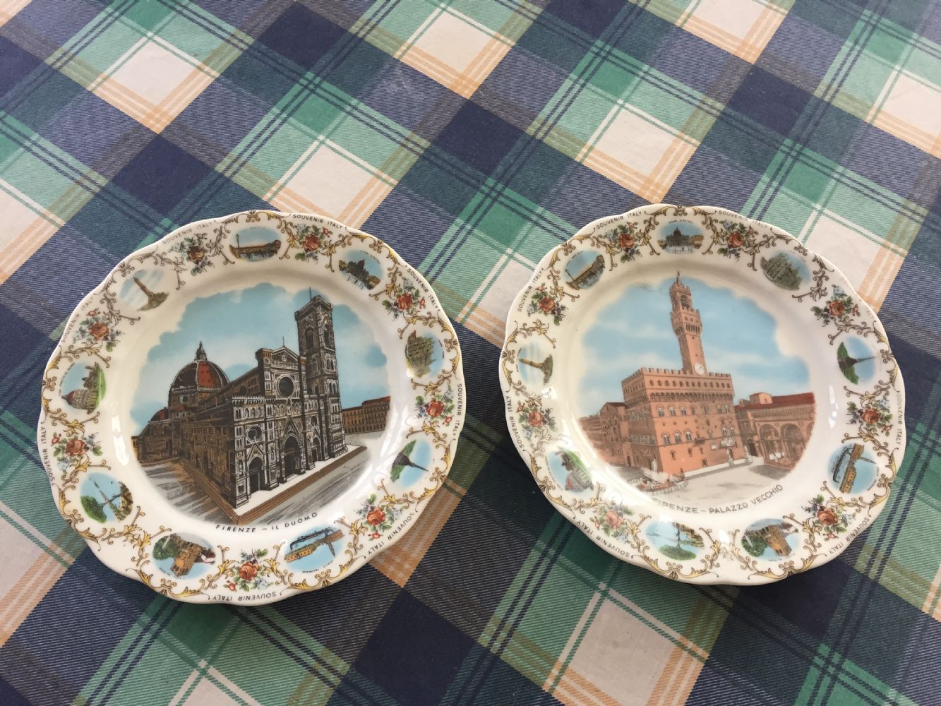 2 piatti, souvenir vintage di Firenze. Ideali per appendere al muro, oppure come piattino centrotavola con cioccolatini ecc.. 1 credito a piatto