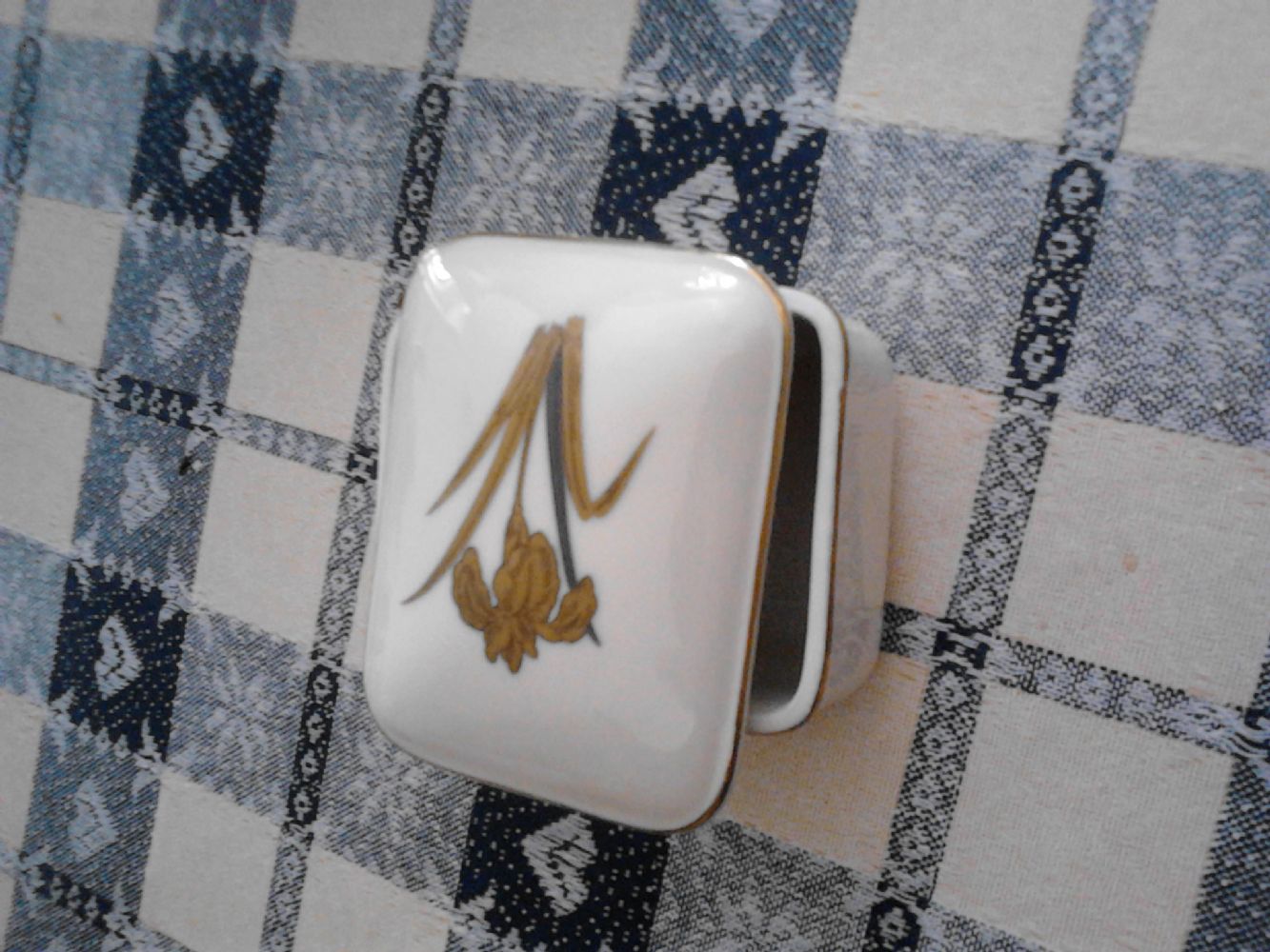 scatolina in ceramica con coperchio misure altezza 4,5 cm circa, lunghezza 9 cm circa e larghezza 7,5 cm circa
