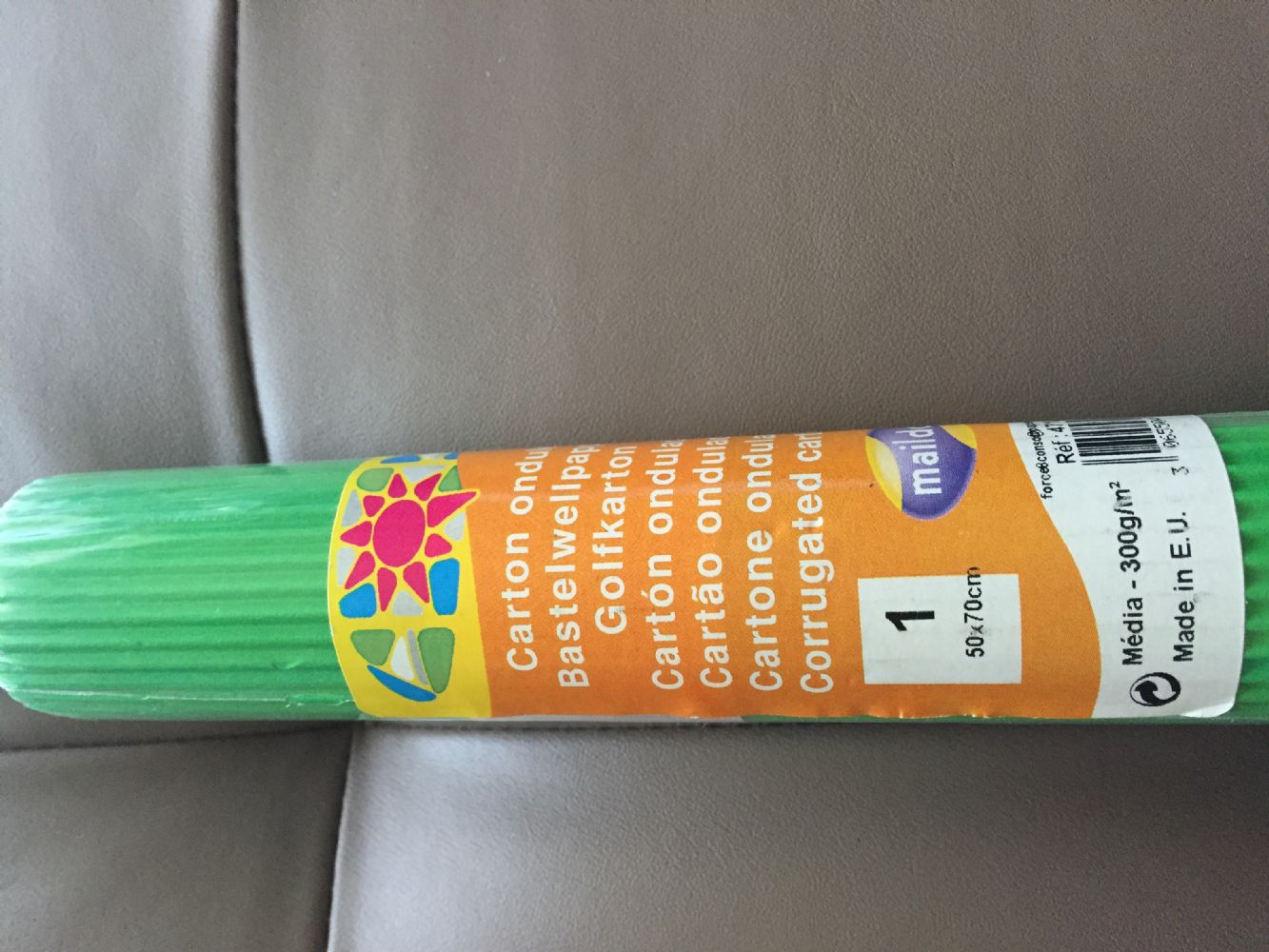 Descrizione:Rotolo sigillato di cartoncino ondulato verde. Il 1 ottobre stai a Vezza, posso consegnare a Lucia.