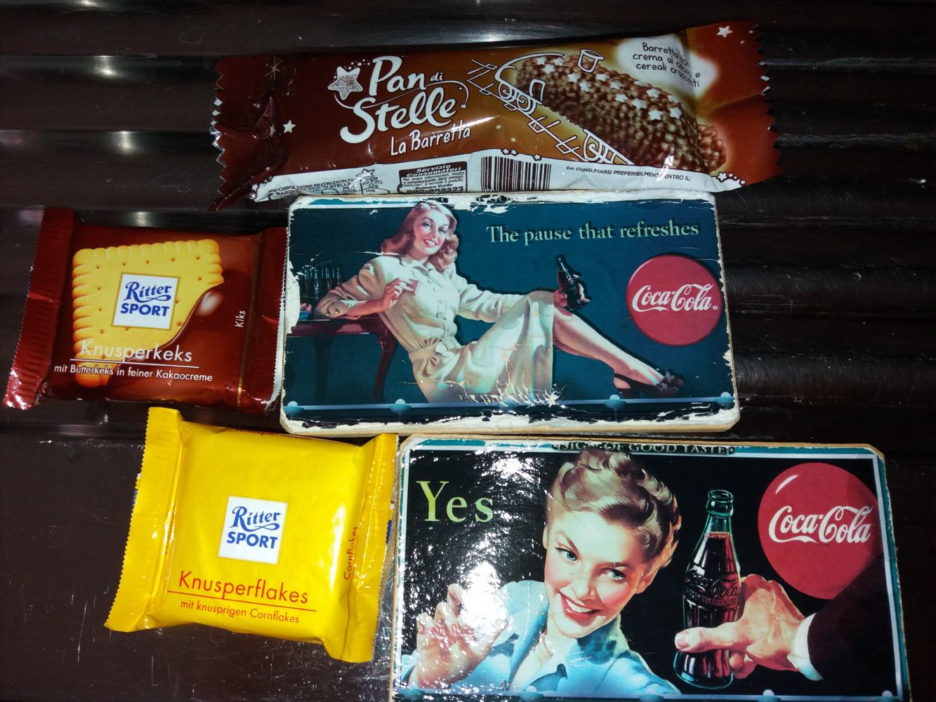 Le 2 Ritter più il Pan di Stelle. Insieme regalo le calamite della Coca Cola.