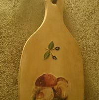 Descrizione:Piccolo tagliere in legno, decorato con la tecnica decoupage. Molto grazioso da appendere in cucina